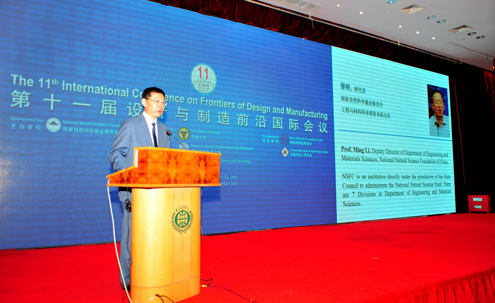 、南京航空航天大学和南京理工大学联合承办,美国吴贤铭基金会、中国机械工程学会协办的第十一届设计与制造前沿国际会议(ICFDM2014)于2014年5月23至25日在南京隆重召开。