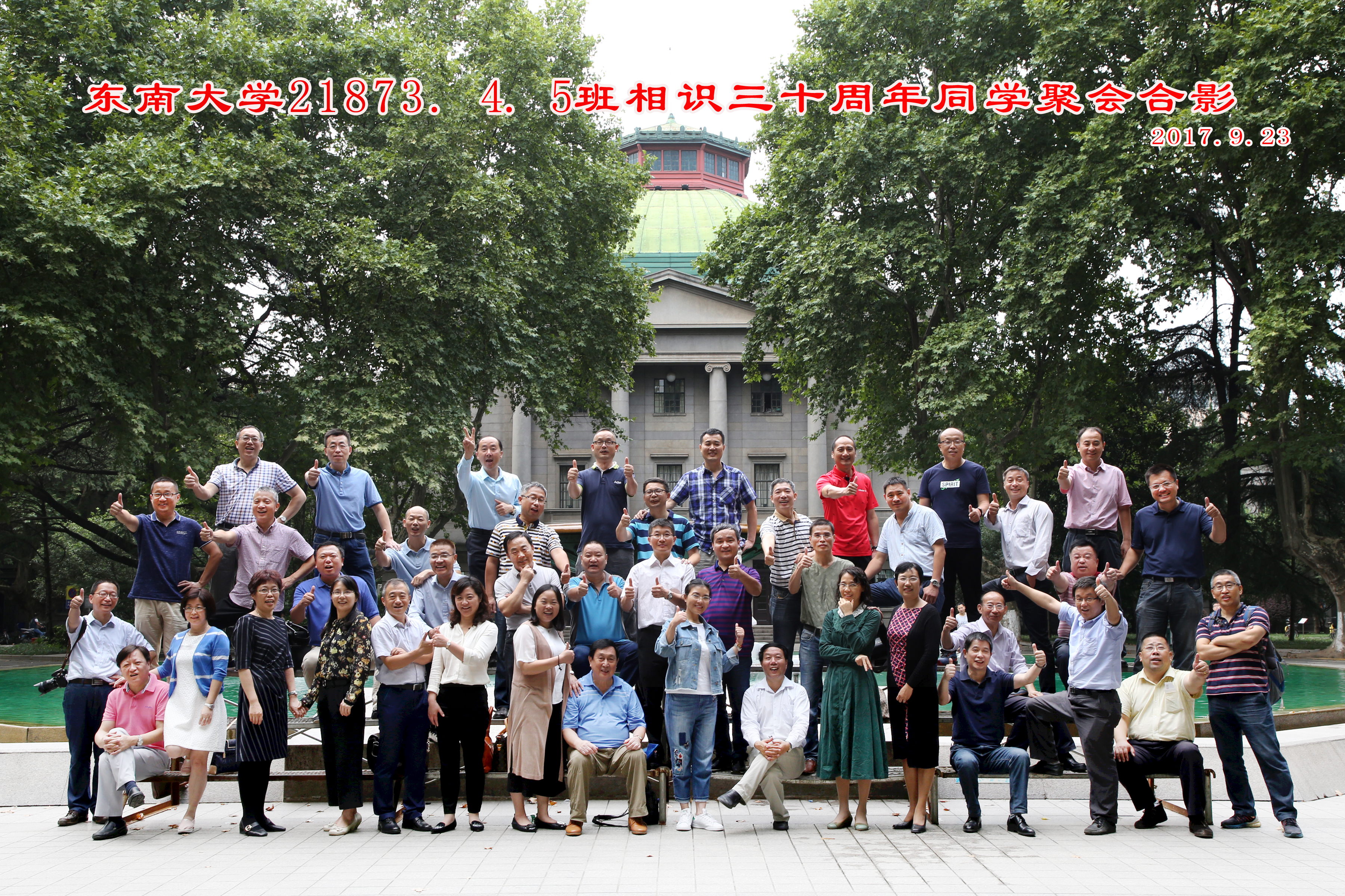2017年9月23日,87级校友(3、4和5班)一行43人回母校庆祝相识30周年。同学们漫步于大礼堂前、六朝松下,一起参观校史馆、重游玄武湖,回忆当初、共叙友情。学院领导倪中华院长、独播库 保卫处处长任祖平教授及退休教师林国基老师参加了此次校友聚会。