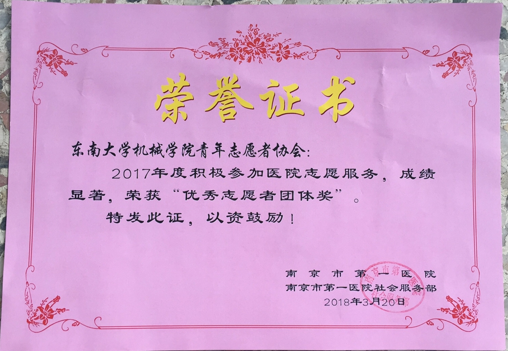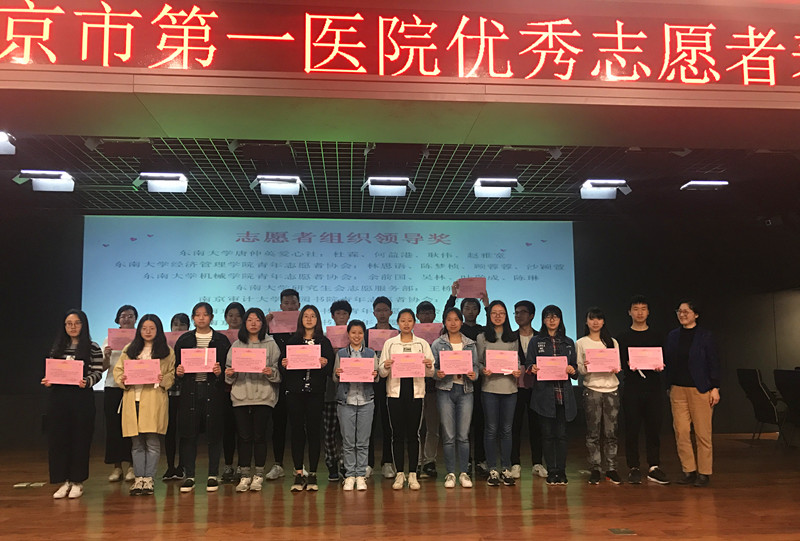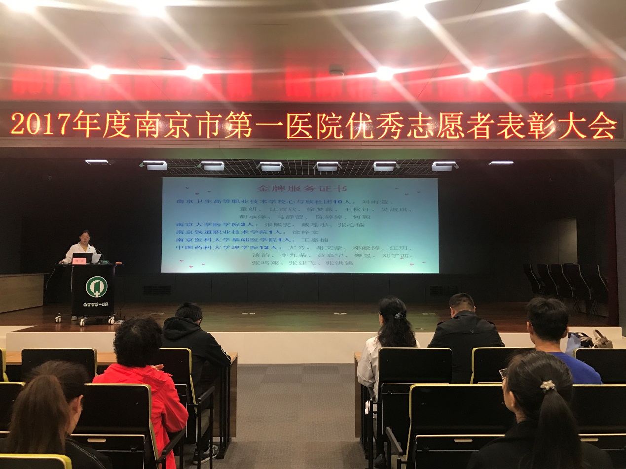 4月1号上午,南京市第一医院在医院多功能大厅举行2017年志愿服务表彰活动,给予广大志愿团体感谢与鼓励。包括独播库 志愿服务部在内的多所南京高校志愿服务团体参会。