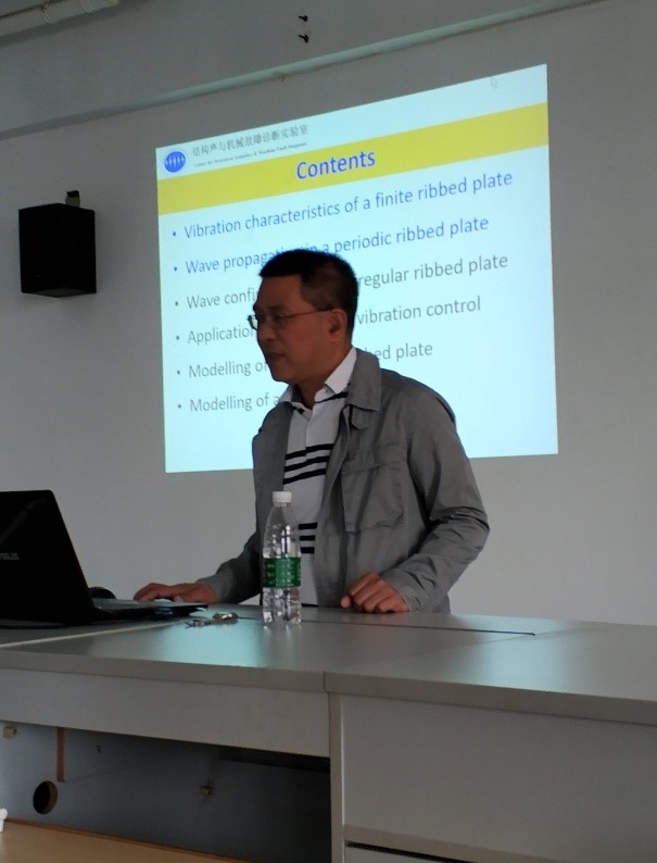 本次讲座主要介绍了对不同边界条件夹筋板结构振动模型的求解过程和求解方法。讨论了夹筋板结构的振动特性,周期/非周期结构的波传播特性以及主要控制机理。林教授以船舶的振动模型为例,介绍了振动控制在实际工程中的应用和意义,并与提问的同学展开了深入讨论,让独播库 学生对振动控制有了新的认识。
