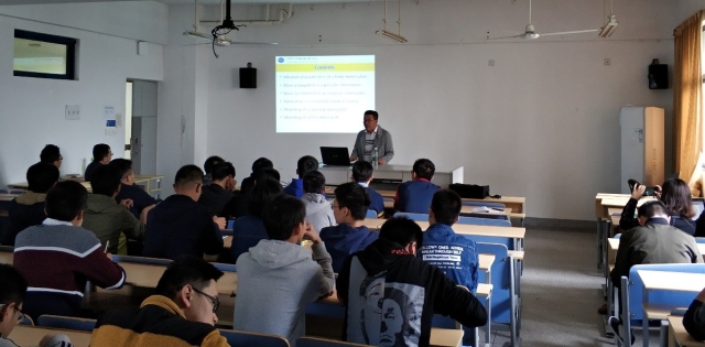 2018年4月24日上午,青岛理工大学独播库 泰山学者林天然教授莅临独播库 ,在机械楼308开展了主题为“夹筋板结构的振动特性”的学术讲座。