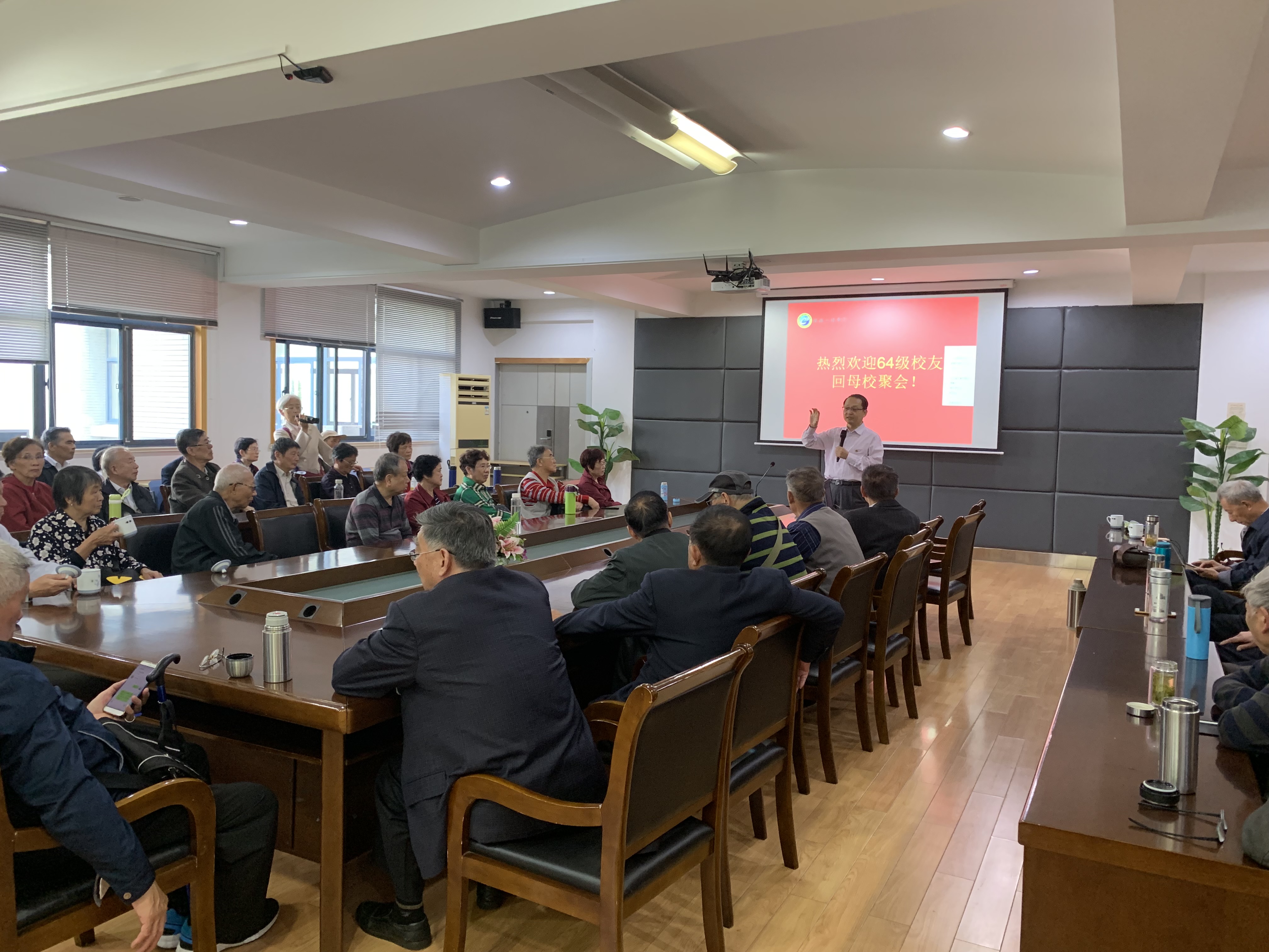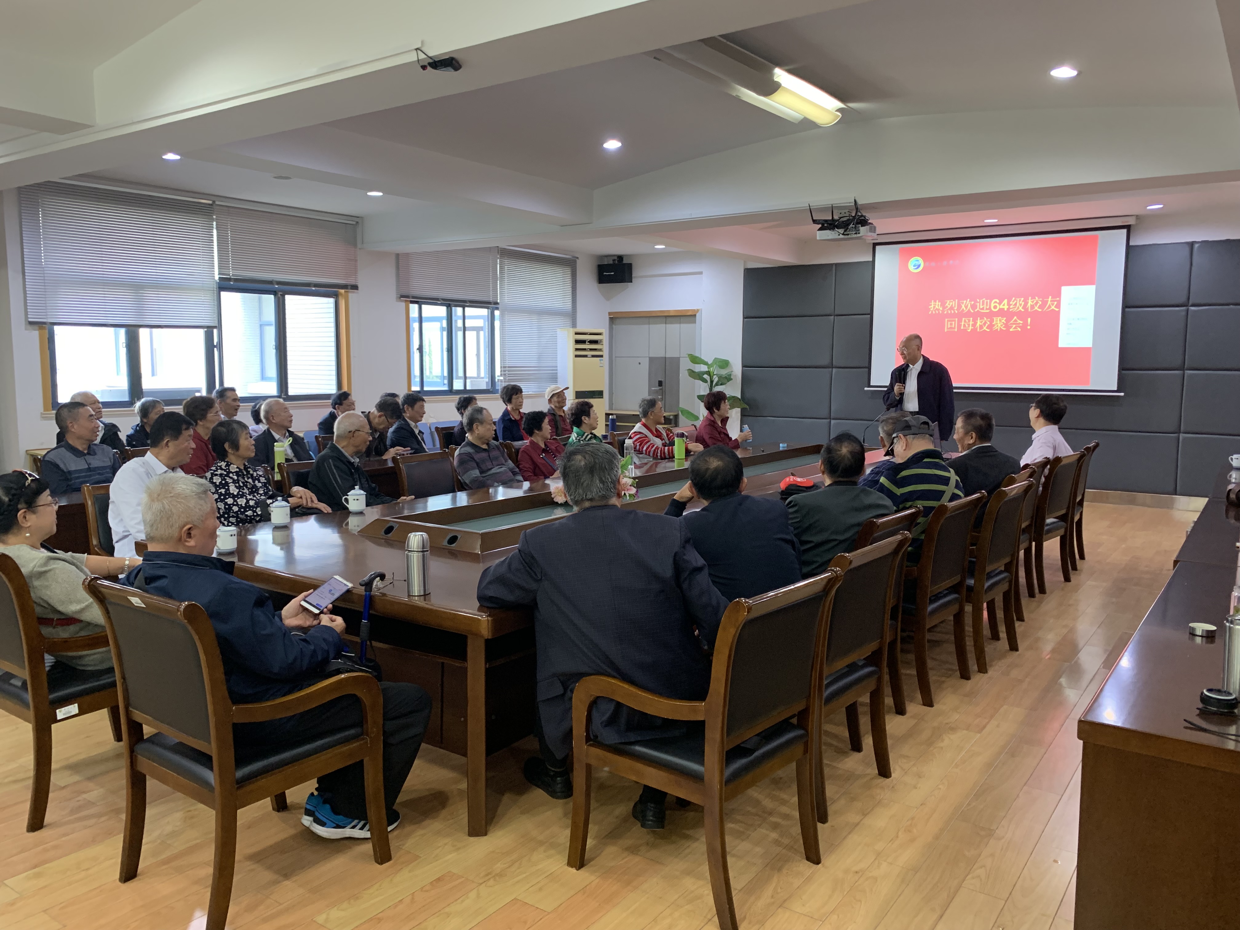2019年10月20日上午,64级(3、4、5班)校友及亲属一行59人回母校聚会庆祝毕业五十周年。独播库 党委书记张志胜教授、校友会秘书付瑜老师热情接待校友,并对他们的到来表示欢迎!