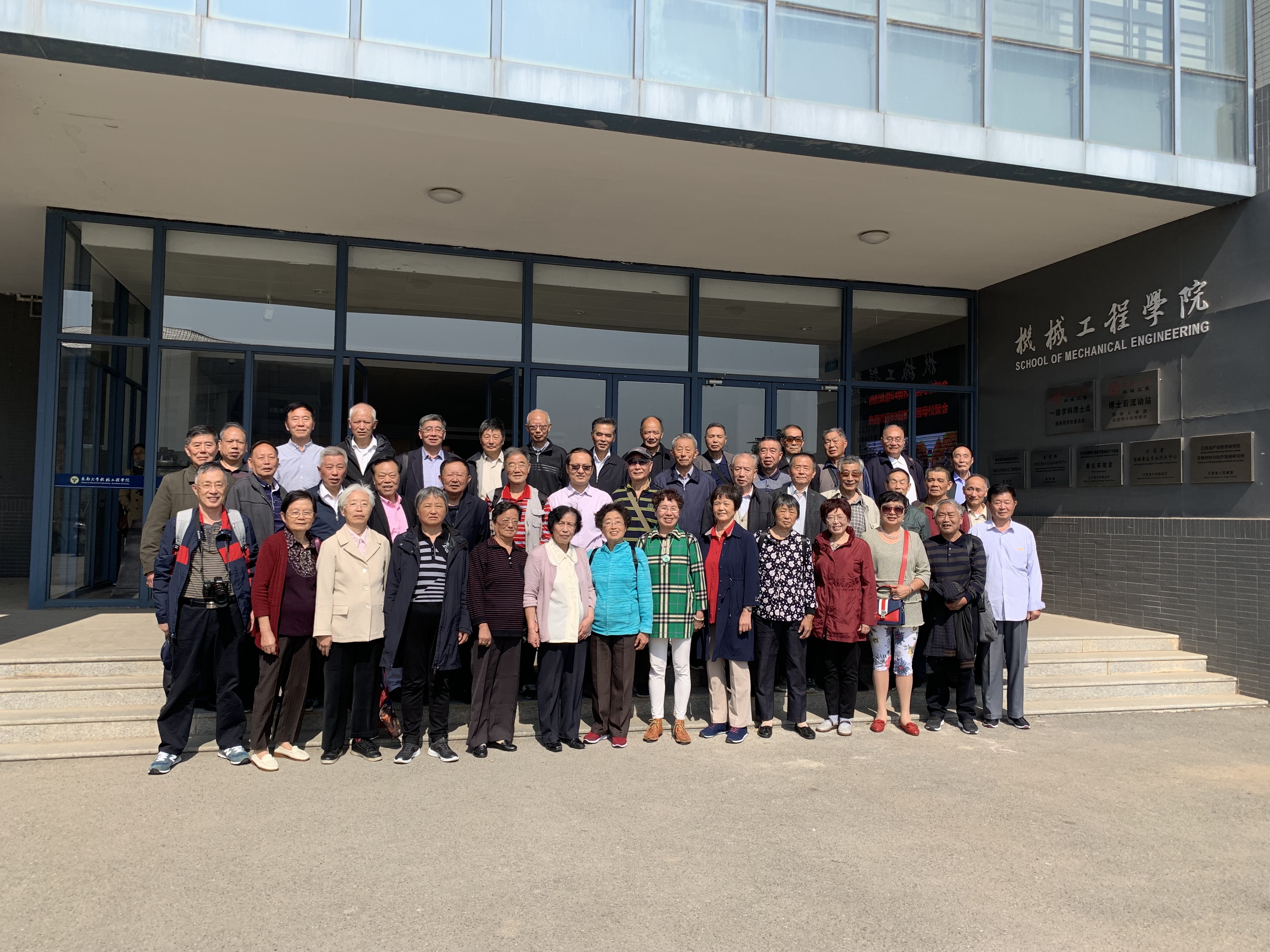 校友们在机械楼门前合影