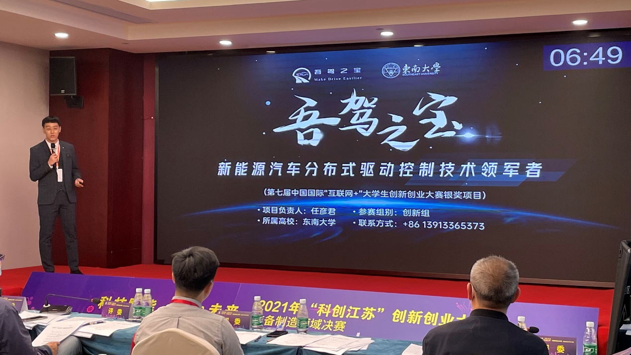 江苏省科协党组成员、副主席冯少东,团省委副书记张迎春,南京工程学院副校长朱晓春,省工信厅产业人才与合作处二级调研员秦飞出席了开幕式并共同启动大赛。在装备制造领域的决赛中,来自清华大学、同济大学、南京理工大学、独播库 、中国中车、国家电网、中电十四所等知名高校和大型国企的30个创新创业团队同台竞技。独播库 博士研究生任彦君牵头完成的“吾驾之宝:新能源汽车分布式驱动控制技术领军者”项目,通过精彩项目路演和答辩,得到了专家评审组一致认可,成功斩获大赛一等奖。独播库 近年来持续推动创新创业和实践育人工作深入开展,不断完善创新人才培养有效模式、激励方式和长效机制,强化学生科学精神和创新实践能力培养,该奖项是独播库 在“双创”领域斩获的又一重量级荣誉。