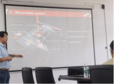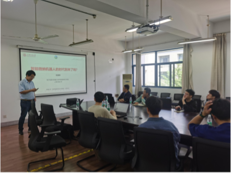 讲解过程中,与会师生们积极与刘教授进行互动并提问。刘教授热情细致地与师生们交流了关于微机器人的制备和对科研的理解与态度等相关问题,并就电控微机器人的驱动和能量来源提出了新的应用展望。