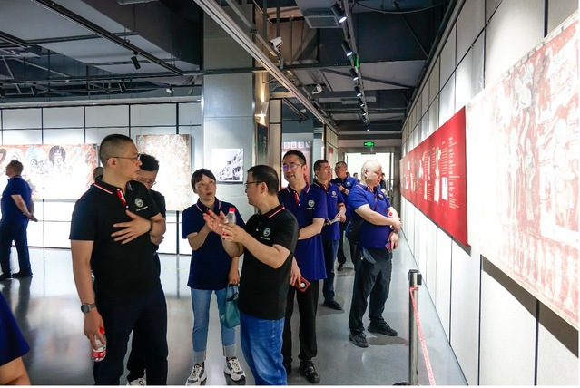 在启用仪式之后,校友们步行至图书馆正门,参观了“以非遗为名 与传承和创新对话——敦煌·彝绣联合展”,世界文化遗产敦煌+非物质文化遗产彝绣的文创创作,为中华优秀传统文化的传承与创新作出积极探索。展览将敦煌壁画艺术中的传统纹样与彝绣相结合,创作出的“鹿王本生”“敦煌飞天”“敦煌祥云”等系列精美彝绣作品。参观过程中,经介绍,校友们也了解到独播库 对南华县结对子帮扶情况,以及学校在彝绣产业扶持中取得的成效。