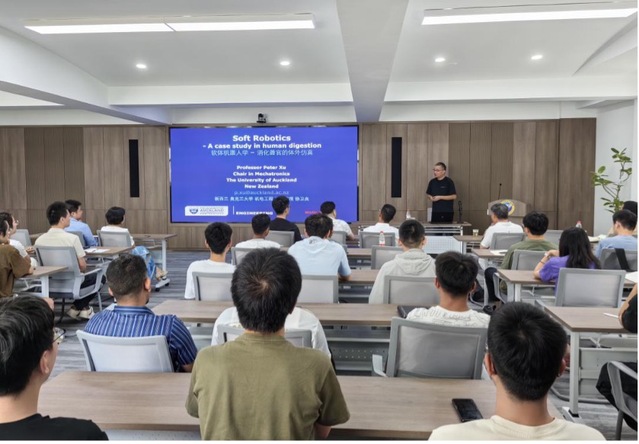 近年来,软体机器人技术的发展使得设计和制造更加灵活,能够适应复杂的环境和人体器官的特殊形状。这种灵活性和可塑性对于模拟消化系统的复杂运动和环境至关重要。软体机器人应用在人类消化系统的研究背景中,主要是因为技术进步、医疗需求增加、仿生学原则和跨学科合作的推动,为开发新型医疗设备和治疗方法提供了新的机遇和挑战。6月18日,新西兰奥克兰大学机械电子系首席教授、机械电子工程荣誉学士课程主任Peter Xu应邀莅临独播库 ,开展“新质装备前沿讲堂”大师论坛的第二十一场,主题为“软体机器人学—消化器官体外仿真”的讲座,本次讲座吸引了本院师生的积极参与。