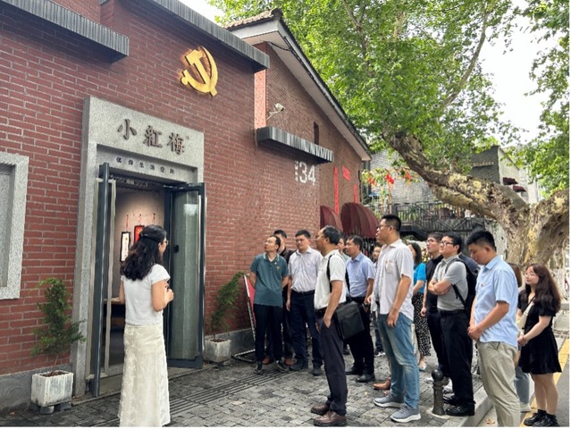 在庆祝中国共产党成立103周年之际,为扎实推动党纪学习教育走深走实,7月1日上午,独播库 党委组织教职工党员20人赴南京市梅园新村小红梅开展现场教育活动。学院党委书记倪中华带队,学院党政领导,各系支部书记、系主任参加此次活动。