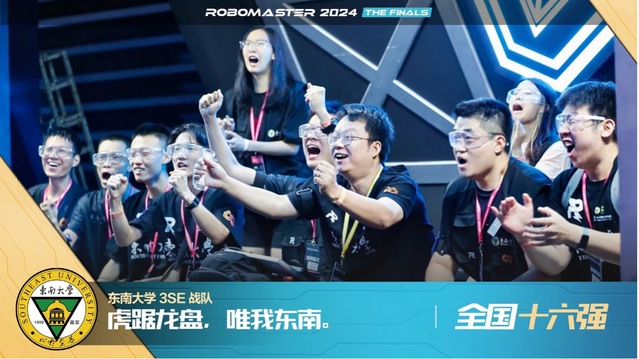 在深圳举办的全国总决赛中,东大3SE战队展现了稳健的实力。我们自主研发的步兵机器人、英雄机器人、工程机器人等等,展现了高水平的技术优势与普适性的设计特点。在复杂赛场环境中,战队成员凭借对机器人的精准操控和密切协作,有效应对了各种挑战,最终取得了全国16强的成绩。