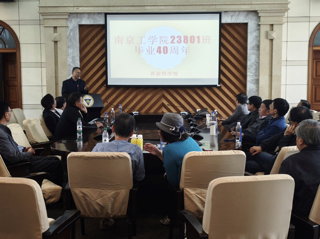 下午三时,校友们齐聚学院南高厅会议室,参加学院组织的校友座谈会。学院主管科研、校友工作的副院长刘晓军教授出席,并以“凝心聚力谋发展,聚精会神创一流”为主题作学院发展报告,全面介绍了学院近年来在师资队伍建设、人才培养、科研创新等方面取得的突出成绩,特别是机械工程学科成功入选第二轮“双一流”建设学科等重要成果。校友办公室秘书闫焱主持会议,并向校友们展示了四十年前保存下来的花名册,唤起了校友们对求学岁月的回忆。