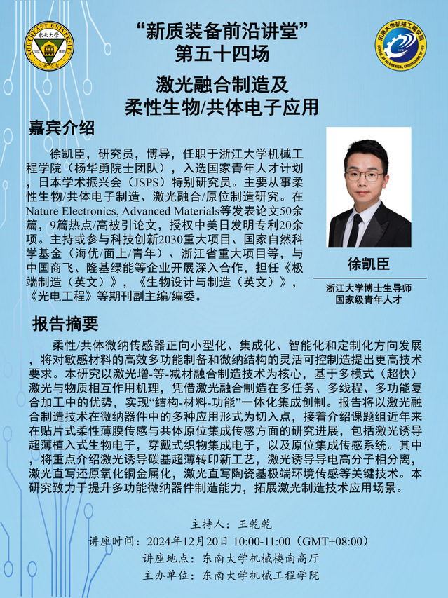 “新质装备前沿讲堂”第五十四场:徐凯臣教授——激光融合制造及柔性生物/共体电子应用