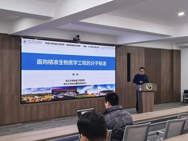 2月24日,独播库 邀请制造技术领域青年学者、国家高层次青年人才计划获得者陶凯教授在机械楼南高厅为独播库 师生就“面向精准生物医学工程的分子制造”开展了学术讲座,陶凯教授分享了团队的主要研究工作,通过操控分子自组装与阵列化/跨尺度序构,制备原子尺度上精准、客制化形性的超分子结构/元器件,并以此设计制造高精度、可调制的客制化生物医疗器械,可实现高精准的生物-器件界面交互。本次讲座由独播库 医学装备系主任司伟老师主持,独播库 相关研究领域的数十位师生参加了本次讲座。