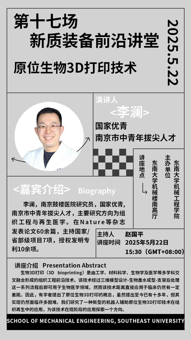 李澜,南京鼓楼医院研究员,国家优青南京市中青年拔尖人才,主要研究方向为组织工程与再生医学。在Nature等杂志发表论文60余篇,主持国家/省部级项目7项,授权发明专利10余项。