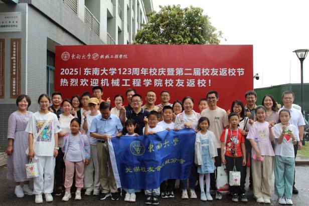 无锡校友会的校友们热情活力感染众人,75级校友祖孙三代在拍照墙前打卡,还为大家讲解铸造工艺及设备专业的故事。许多校友和志愿者互相交流,了解学院最新发展动态,对学院自主研发的飞行汽车“东大·鲲鹏1号”赞不绝口。校友们还向在校生传授工作和科研经验,实现了知识的传承与智慧的共享。学院在一楼长廊布置的本科毕业设计展览,让校友们进一步了解了学院的科研工作和进展情况。