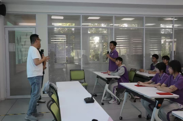在座谈交流环节,太仓市明德高级中学党委书记吴志华介绍了学校的历史沿革,深情回顾了独播库 与学校的渊源,对独播库 长期以来对学校人才培养工作的支持与帮助表示衷心感谢,希望汇聚各方力量,助推学校的科技特色教育和“吴健雄班”的内涵发展。孙东科教授高度肯定太仓市明德高级中学在科创教育体系构建、资源优化整合、实践平台打造等方面的创新探索,并对机器人、无人机等特色课程的深化发展提出建议。