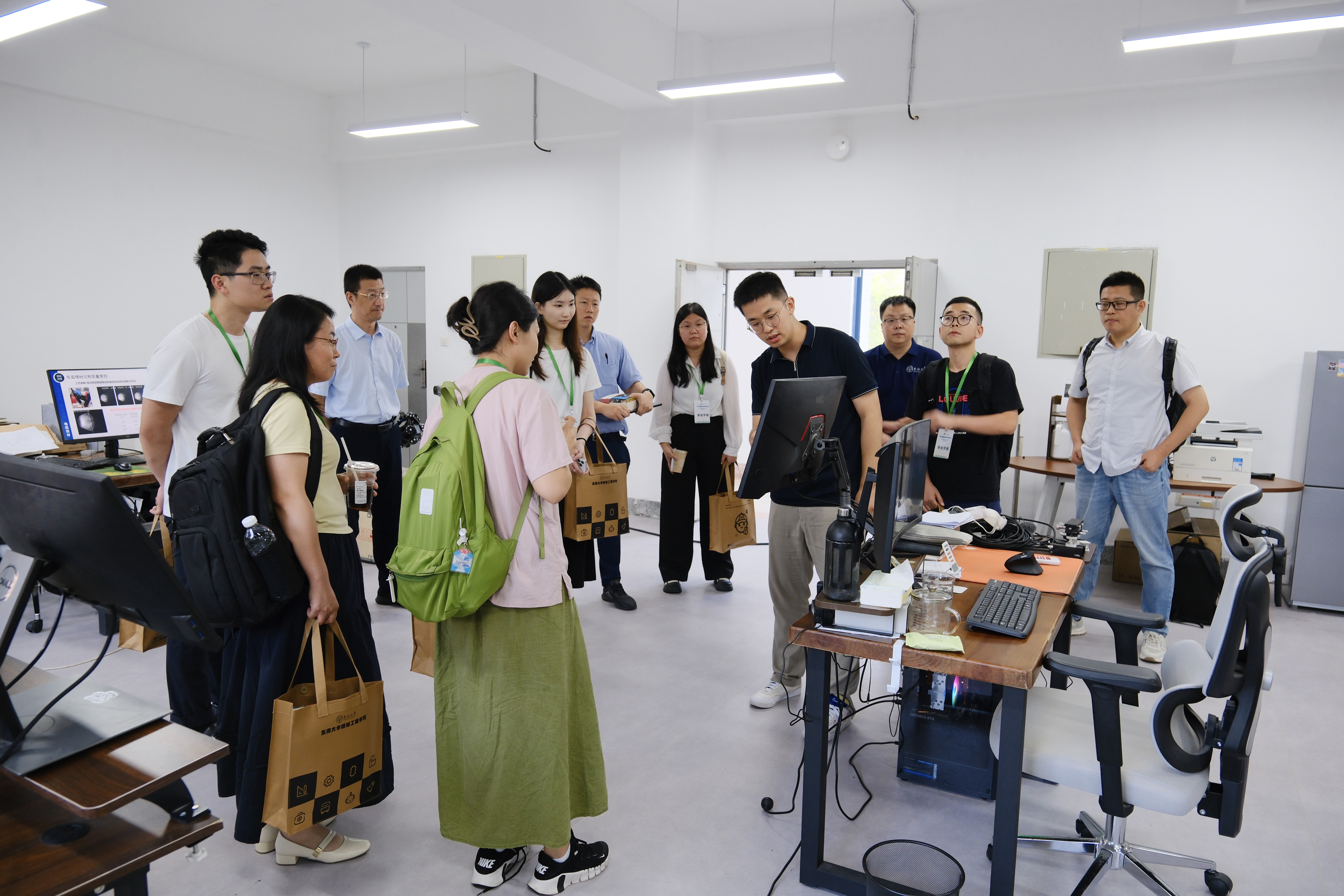 随后,在费院长和各实验室负责人的带领下,与会学者一同参观了独播库 国家级人才团队实验室。在参观过程中,各位负责人向学者们展示了实验室布局,介绍了仪器设备情况,并就相关研究方向展开深入探讨,给学者们留下了深刻印象,使未来实现学术资源共享和人才汇聚融合愈发令人期待。