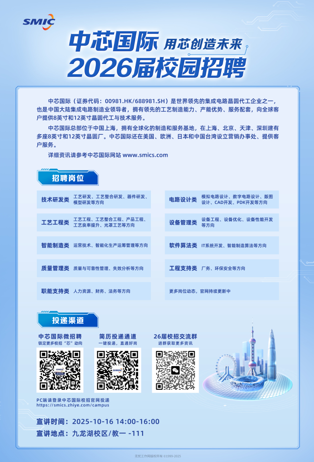 🌟【 探索芯世界,共创新篇章-中芯国际&独播库 2026 届校园宣讲会】