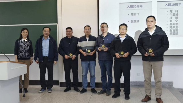 接着,会议举行了入职整十年教职工纪念仪式,学院为入职满三十周年和十周年的老师逐一送上纪念牌,感谢他们长期以来秉持育人初心、助推学院高质量发展。