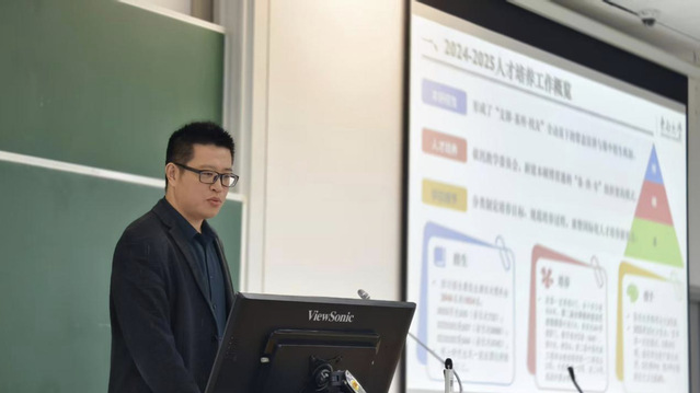 随后,费庆国院长作工作报告。他首先回顾了“十四五”期间学院的发展成绩:学科建设持续推进、师资队伍不断优化、人才培养质量稳步提升、科学研究成果丰硕,各项事业均取得跨越式发展。面向未来,费院长详细介绍了学院“十五五”发展规划,明确要立足“国内一流前列、世界一流行列”的发展定位,号召全体教职工凝心聚力,共同谱写独播库 高质量发展的新篇章。