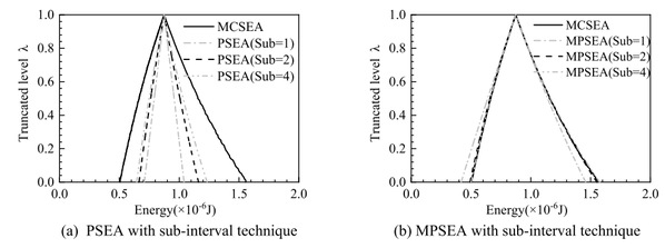 Uncertainties to varying degrees often exist in the analysis and design problems of vibro-acoustic systems. This paper investigates the high-frequency vibro-acoustic analysis problem with large levels of fuzzy parameters. By employing the level-cut strategy, the energy balance equations with fuzzy parameters are firstly transformed into the interval forms. Then, by combining the perturbation method, the ShermanMorrison-Woodbury formula, and the statistical energy analysis, a modified perturbation statistical energy analysis (MPSEA) is proposed to predict the uncertainty propagation of the energy flow in vibroacoustic systems with fuzzy parameters. Further, the sub-interval technique is introduced in MPSEA to improve its accuracy for the systems with large levels of fuzzy parameters. Numerical simulations of a plate-cavity system and a launcher fairing model with fuzzy parameters are presented to demonstrate the efficiency and accuracy of proposed method. Results indicate that the proposed MPSEA with a suitable number of sub-intervals is capable of predicting the energy flow in vibro-acoustic system with large fuzzy parameter accurately and efficiently.