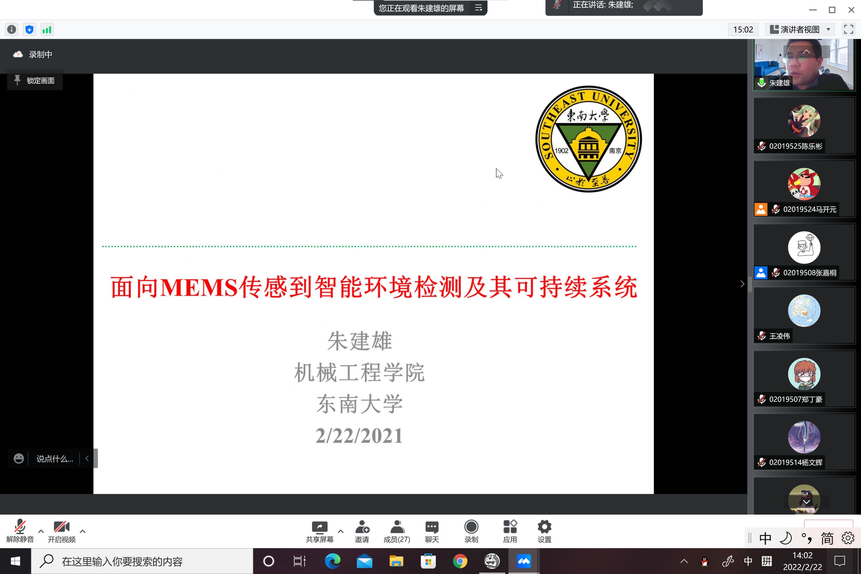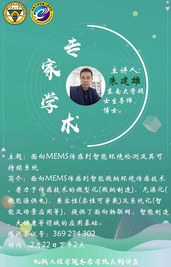 全体同学带来了一场别开生面的讲座,围绕面向MEMS传感到智能环境检测及其可持续系统这一主题,朱建雄老师从MEMS的发展历史与趋势出发,分析了其商业化面临的挑战,并着力于MEMS传感技术微型化、无源化、兼容性以及系统化这四个方面为我们详细介绍了MEMS传感的原理与应用。朱建雄老师列举从智慧城市到智能家居再到数字阮生、人体健康检测等领域的大量例子为同学们深动形象的展示了面向MEMS传感到智能环境检测及其可持续系统在面向物联网、智能制造以及大健康等领域的广泛应用。同时朱建雄老师也讲座过程中对于各种检测的机理深入浅出的为同学们做了介绍。最后朱建雄老师给同学们展示了自己在面向MEMS传感到智能环境检测及其可持续系统方面的一些研究成果,并与同学们做出了一些交流探讨,通过这场讲座,同学们对MEMS有了一定的了解,也明白了该项技术良好的前景。