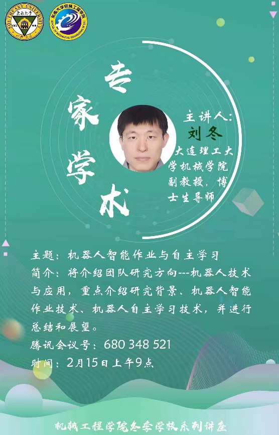 为拓宽同学们的视野,丰富学习生活,帮助同学们了解机械的前沿技术及其应用,同时响应国家智能制造战略。在冬季学校期间,独播库 重磅推出专家学者学术系列讲座,共分为以下四个主题。