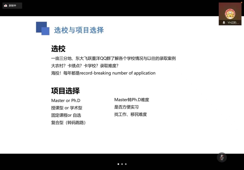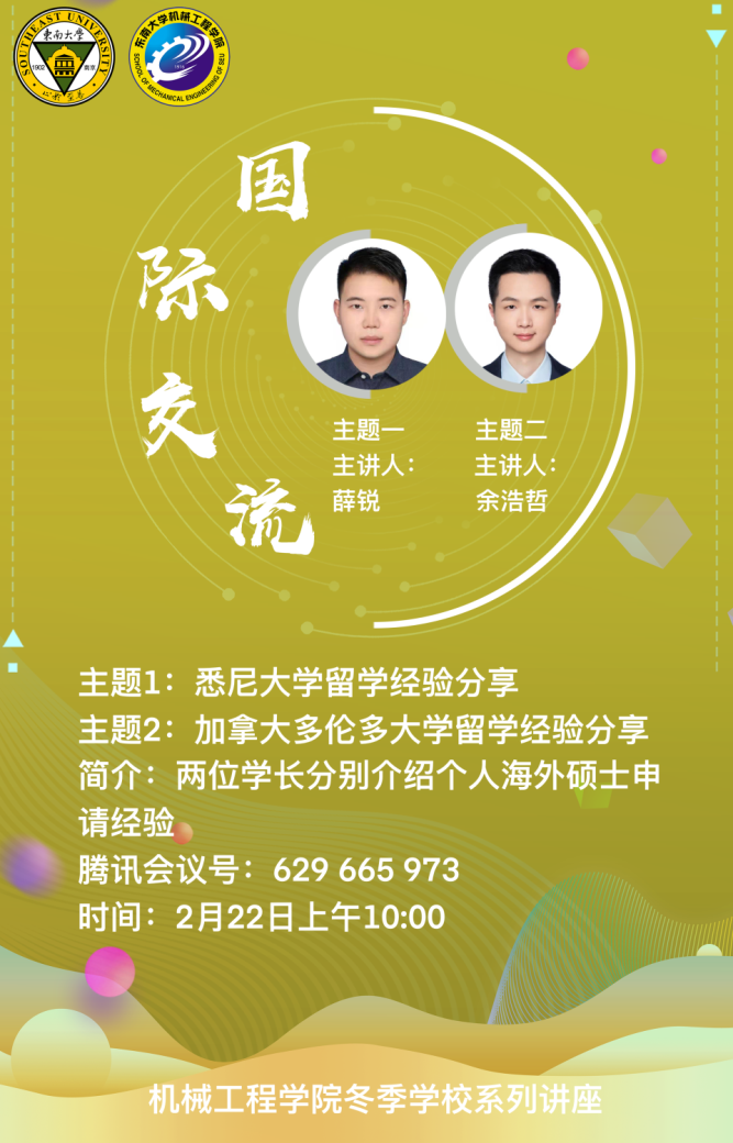2月23日上午,参与加州大学洛杉矶分校人工智能项目的刘一泓学姐和参与2021年暑假英国贝尔斯特女王大学线上交流项目的邱雨学长分别对各自项目进行了经验分享。刘一泓学姐主要对自己的短期交流项目的过程进行了详细概括,从线上的授课环节到线下的参观交流环节,并在此之后简要介绍了自己的申报流程及经验。邱雨学长则是从自己的申请经历开篇,对自己的线上交流体验进行了分享,并给予同学们关于申请项目的一些建议。本次讲座不仅让同学们对于短期交流项目进行了简单了解,也让同学们得到了一些经验与阅历,也相信同学们在以后的申请项目时会仔细认真,避免出错。