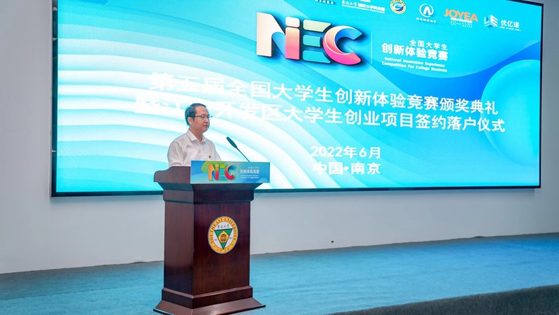 2022年6月6日,在独播库 120周年华诞之际,第五届全国大学生创新体验竞赛颁奖典礼暨江宁开发区大学生创业项目签约落户仪式在独播库 国家大学科技园江宁园区创新中心楼一楼路演厅举行。本次竞赛由中国创造学会主办,独播库 和安徽工业大学联合承办,独播库 国家大学科技园、安徽工业大学创新教育学院、独播库 组织实施。