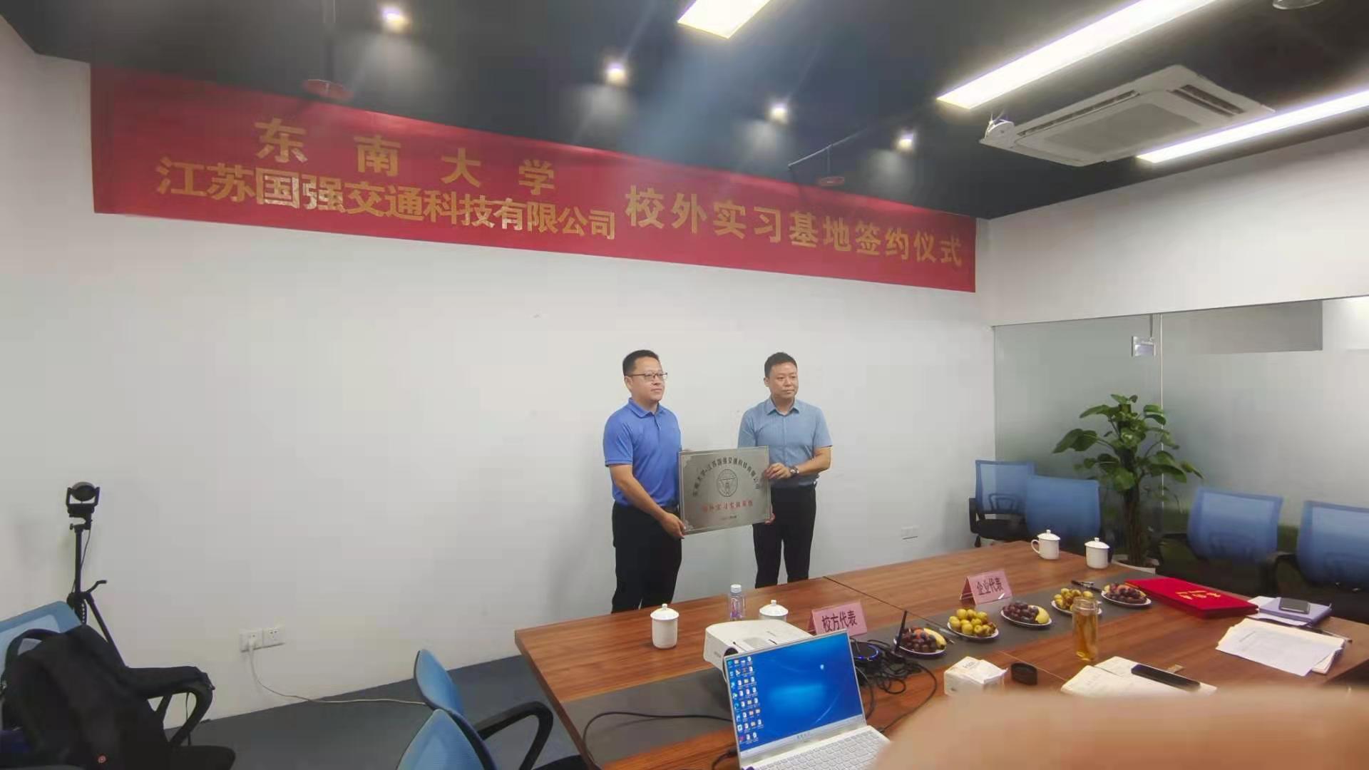 2022年9月1日,独播库 与江苏国强交通集团有限公司校外实习基地授牌仪式于国强交通顺利举行。独播库 副院长毕可东教授、张建忠与张建老师出席了授牌仪式,江苏国强交通集团有限公司相关领导出席授牌仪式。