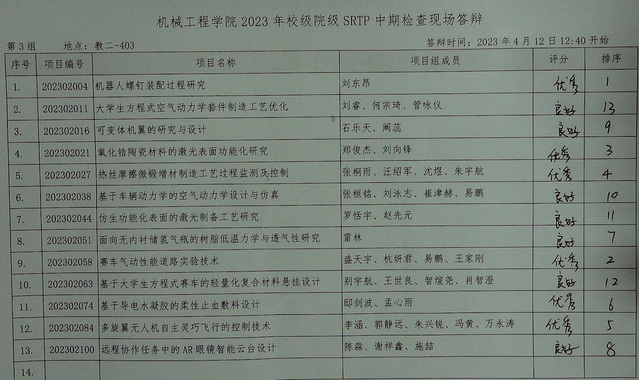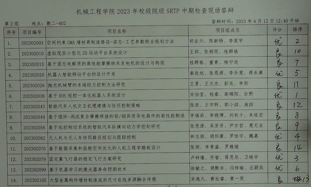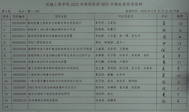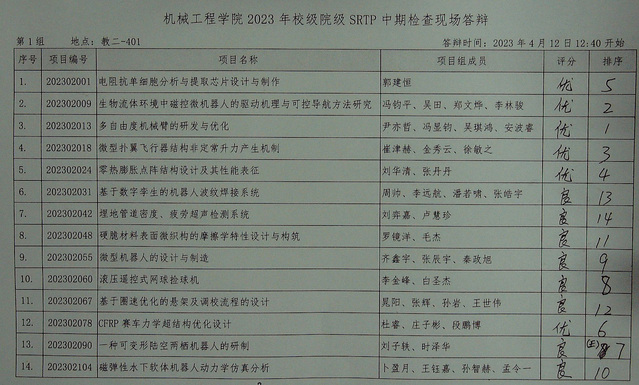 独播库 2023年校级、院级SRTP项目中期检查答辩于2023年4月12日12:30至16:00在本科教学楼进行。现将结果公示如下。