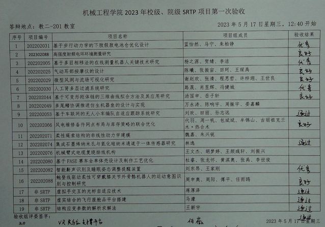 独播库 2022年校级、院级SRTP项目、2023年半年期项目,2023年第一次验收于2023年5月17日12:40至16:10在本科教学楼进行。