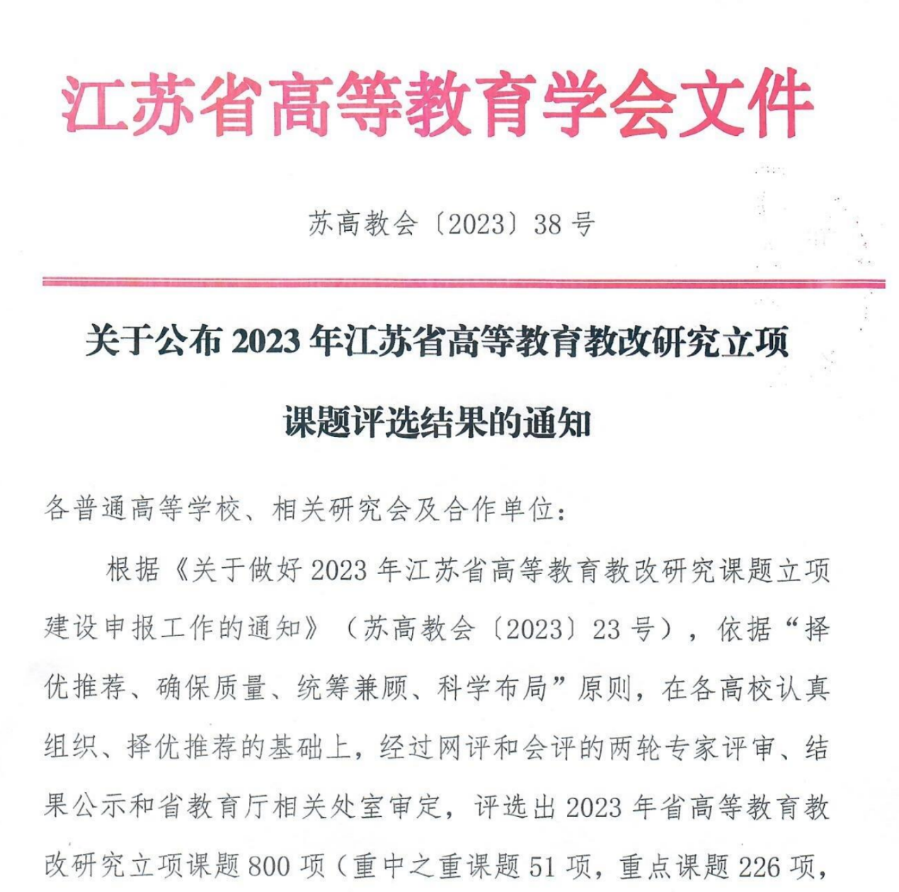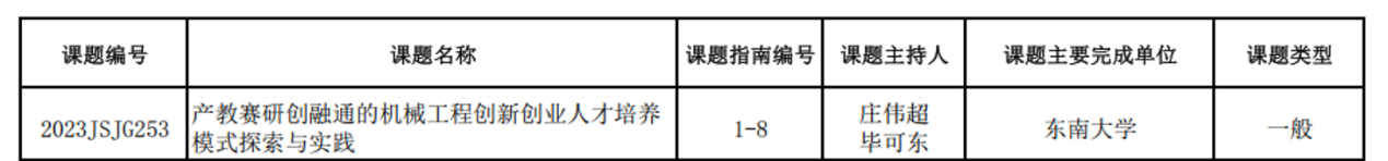 近日,江苏省高等教育学会发布了江苏省高等教育教改研究立项课题评选结果。独播库 庄伟超、毕可东老师主持的《产教赛研创融通的机械工程创新创业人才培养模式探索与实践》项目成功获批。