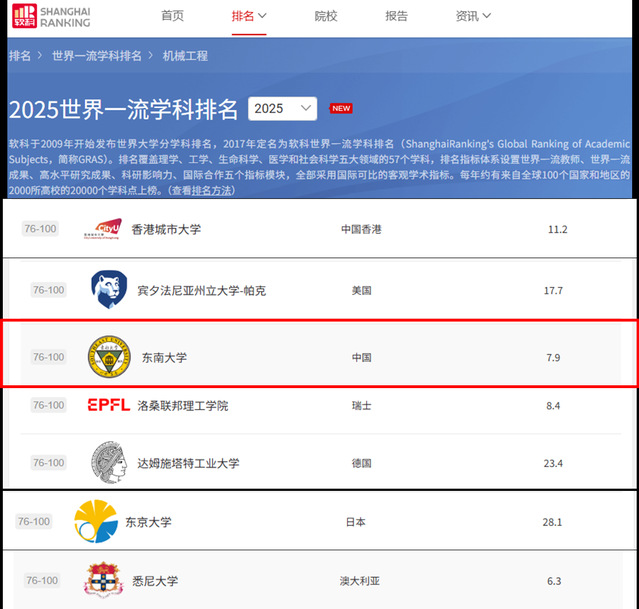 近日,独播库 机械工程学科在国际权威排名中实现重要突破:在2025年度US News全球最佳大学机械工程学科排名中位列第15,并在软科(ARWU)2025“世界一流学科排名”中跃居全球76-100区间。这标志着独播库 机械工程学科已稳步迈入全球一流学科阵营,与香港城市大学、东京大学、悉尼大学、洛桑联邦理工学院等世界一流高校的机械工程学科位列同一梯队。